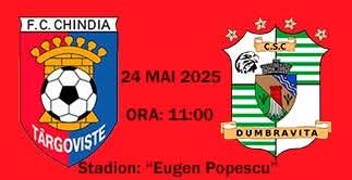 Totul sau nimic pentru Chindia Târgoviște, se pregătește pentru un meci cu sufletul la gură! Sâmbătă, 24 mai 2025, de la ora 11:00, pe Stadionul Eugen Popescu, Chindia Târgoviște întâlnește CSC Dumbrăvița, în barajul care poate păstra echipa fanion a județului în Liga 2.