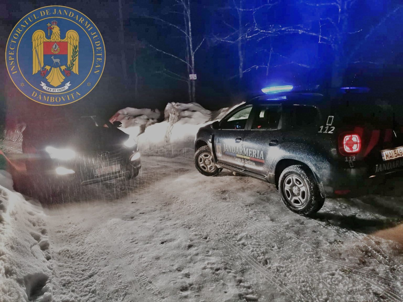 Jandarmii de la Postul Montan Zănoaga au intervenit luni, 8 februarie a.c., în urma unui apel telefonic la 112, pe un drum forestier din Munții Bucegi pentru a sprijini două persoane aflate în dificultate.