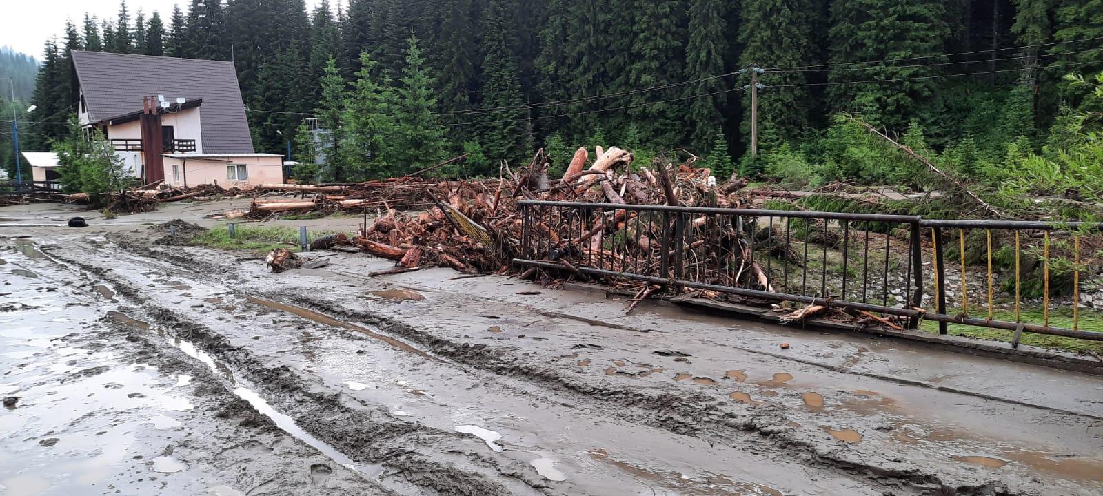 DJ 714 este parțial blocat de aluviuni și doborâturi, astfel că nu se poate face accesul de la Zănoaga către Dichiu.