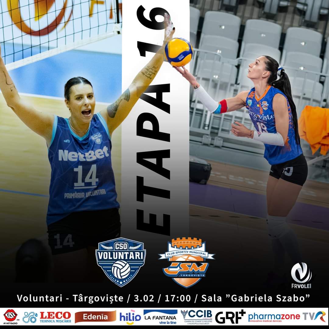 VOLEI FEMININ: Meciul etapei între două formații extrem de spectaculoase, CSO Voluntari-CSM Târgoviște, sâmbătă, 3 februarie, ora 17:00, sala “Gabriela Szabo” din Bucureșt .