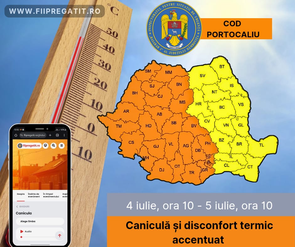 Rămâneți la adăpost, în spații răcoroase, și urmăriți alertele meteo oficiale!