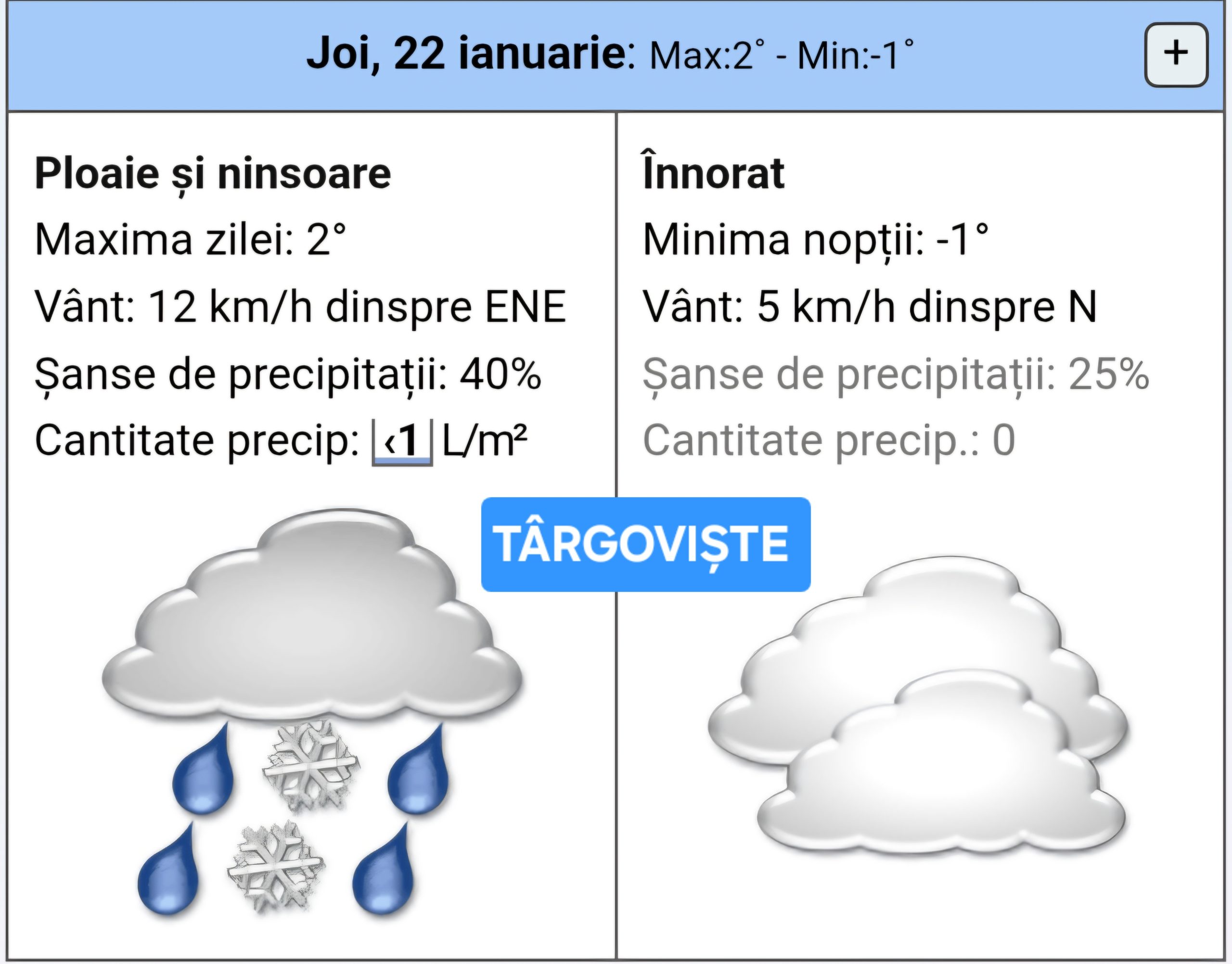 În nord-estul Moldovei, precipitațiile solide și mixte vor deveni moderate cantitativ începând din prima parte a nopții de 22 spre 23 ianuarie.