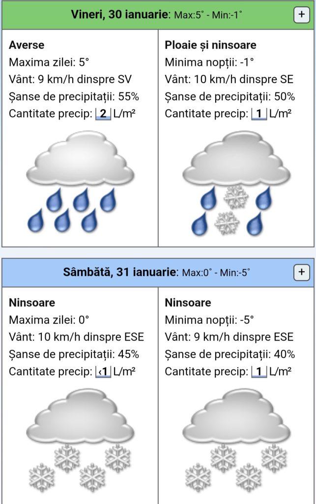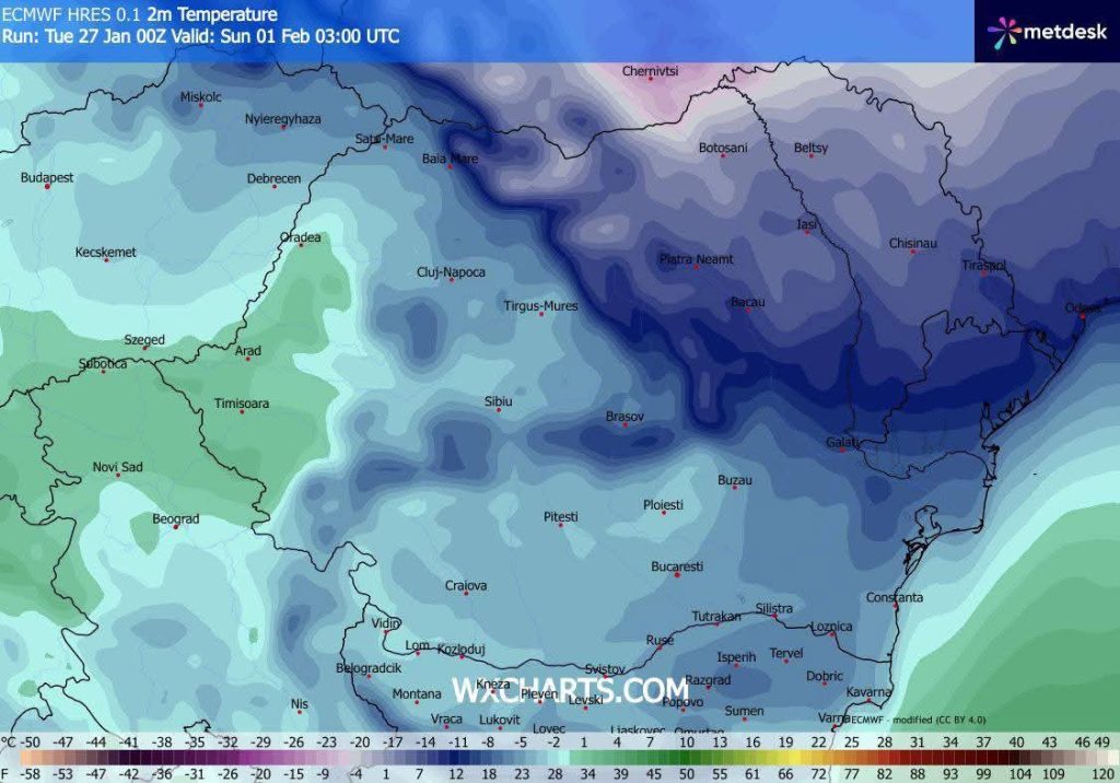 Potrivit prognozelor, din seara zilei de 30 ianuarie, temperaturile vor scădea semnificativ în nordul Moldovei, urmând ca noaptea 30/31 ianuarie să fie afectate și Moldova, Transilvania, zonele montane ale Carpaților Orientali și Dobrogea. Pe parcursul zilei de 31 ianuarie, răcirea va cuprinde și Muntenia și Oltenia.